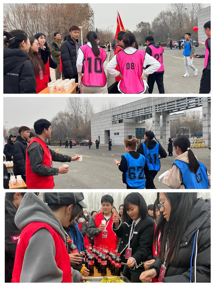 赛道上,师生们敢拼敢超,不畏严寒、奋勇争先,充分发扬了阳光体育精神。通过奔跑不仅传递运动精神,更传递了无畏困难勇往直前的民族精神。沿途师生驻足齐声呐喊、加油助威,志愿者服务部的同学们投身于补给点,为选手们提供“续航动力”。