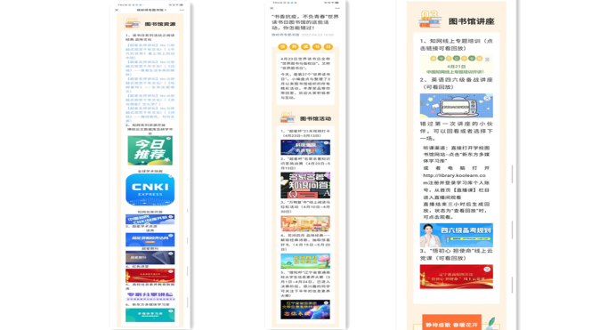 4月23日,是第27个世界读书日。为响应习近平总书记致信首届全民阅读大会的贺信精神,深入推进全民阅读,进一步深化“书香校园”建设,满足我校师生居家学习生活期间的文化需求,今年4月,我校图书馆利用云端开展了“书香抗疫,不负青春”主题活动。