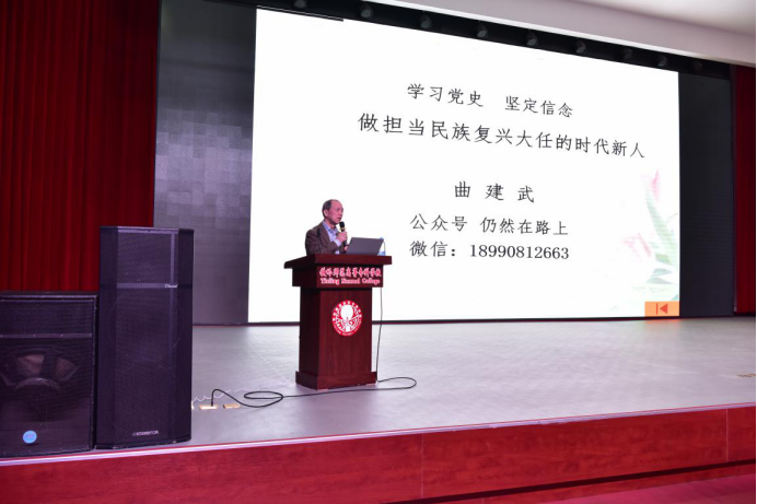 3月24日,曲建武教授来到多盈在线手机版下载,在A报告厅作了题为《学习党史坚定信念做担当民族复兴大任的时代新人》的报告。
