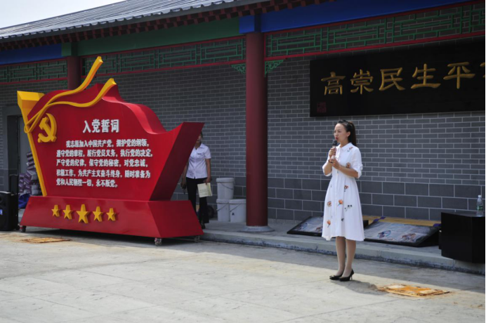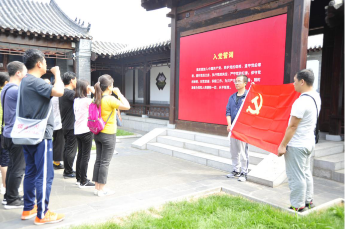 在中共满洲省委开原支部党史陈列馆的宣誓广场,全体党员面对党旗庄严宣誓,重温了入党誓词。