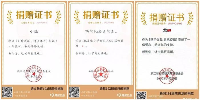 五、“我们隔离病毒,但不隔离爱。”自武汉爆发疫情以来,文院学子持续关注疫情发展,并积极响应参与其中,以爱心捐款、网络祈福,网络承诺书等实际行动为武汉加油,汇聚爱心力量,共战肺炎疫情。